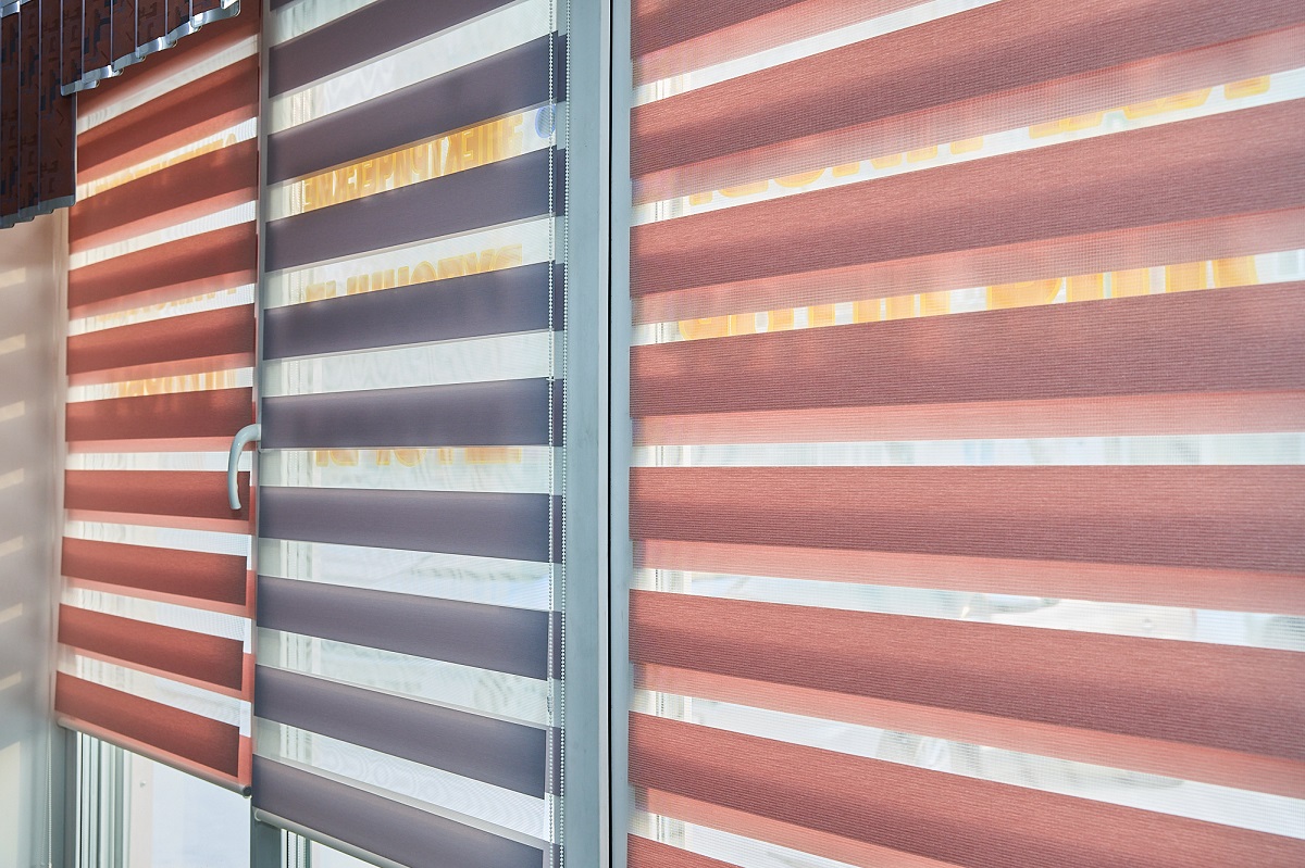 Это двойное полотно с чередующимися прозрачными и непрозрачными полосами. Полосы смещаются относительно друг друга при подъёме/опускании, создавая эффект «зебры».