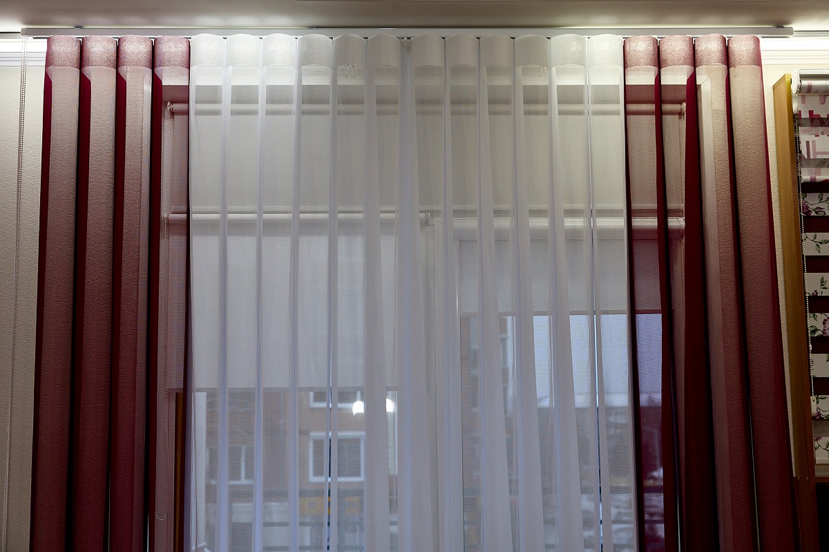 - большой выбор тканей: от лёгких вуалей до плотных блэкаут‑материалов;
