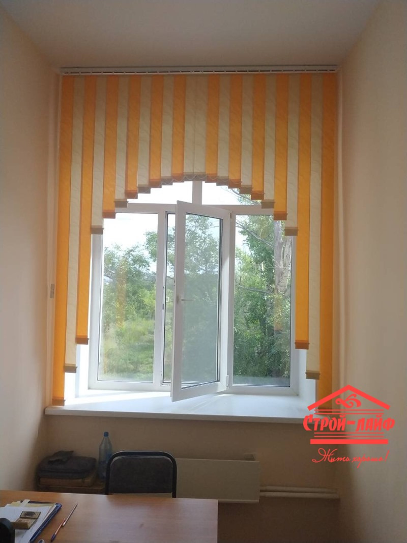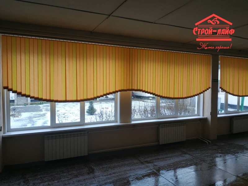 Помимо классической конструкции вертикальных жалюзи мы можем предложить ламбрикены – это жалюзи с фигурным нижним краем. Этот вид жалюзи удобен в тех случаях, когда не требуется закрываться от солнца, но нужно украсить оконный проем. А разнообразие форм позволит вписать ламбрикен в любой стиль интерьера.