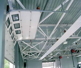 Те секционные ворота, которые используются на промышленных объектах, дополнительно комплектуются системой защиты от обрыва троса. Если такой обрыв все же произойдет, полотно ворот блокируют специальные кронштейны.